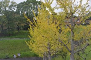 公園内には色づき始めたイチョウの木、足元にはかわいい「スミレホコリタケ🍄」を発見!!