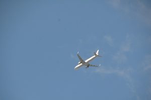 見上げると、真っ青な空を飛行機が気持ちよさそうに飛んでいます。